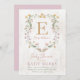 Convide os seus amigos para um chá de fraldas com este maravilhoso convite para chás de fraldas florais que inclui um estilo de vintage, uma borda da crista de monograma de flor silvestre com tons de roxo, verde e ouro. Sofisticado e eterno, este convite é certamente apreciado como um guardião para sempre.