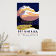Poster para o Bureau Viagem dos Estados Unidos promovendo viagem a Montana, promovendo o turismo, mostrando o aglomerado de tipis com montanhas ao fundo. Da Coleção de Posters WPA na Biblioteca do Congresso.