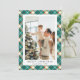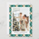 Cartões de Natal personalizados para xadrez de vinheta, com queda de neve em um fundo de xadrez de vintage verde. Personalize facilmente este cartão de Natal com fotos antigas com a sua imagem favorita e um nome de família.