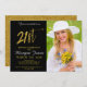 21º Convite de Aniversário Elegante de Folha de Ouro Negra e Faux. A foto neste convite pode ser atualizada, assim como o nome, a data e o local.