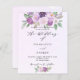 Um fundo violeta, lavanda, de cor aquosa. Decorado com flores violetas e púrpuras de cor aquosa e verde. Personalize e adicione seus nomes e detalhes da festa. 1 folha = 1 convite impresso de borda a borda.