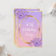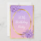 Um cartão de convite feminino e chic para uma festa de aniversário 50ª. Glamoroso com ouro rosa elegante e fundo de gradiente ultravioleta. Com uma falso estrutura dourada e flores ultra violeta e cor d'água púrpura. Na frente do texto: 50ª Festa de aniversário em um script de estilo manuscrito, letras brancas. Traseira: Rosa dourado e fundo violeta e modelos para detalhes de nome e festa.