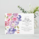 Convite de chá de fraldas floral com lindíssimos violetas roxas pintadas à mão e flores cor-de-rosa. Sacudir nosso convite para ver uma coordenação de volta para um toque especial extra.