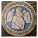 Elegante clássico, vibrante Renaissance fine art, obra-prima de Bottega della Robbia ( Florence - Itália ) em cores brancas, azuis, verdes, castanhas.Madonna com anjos brancos no céu azul numa coroa floral decorativa com uma pedra brilhante 3d Gem .