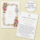 Apresentando uma bela imagem católica tradicional da Virgem Abençoada Maria, Nossa Senhora de Graça na Medicina Miraculosa com rosas rosa. Uma oração está atrás da noiva e do noivo. Todo texto e fontes podem ser modificados.