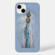 Virgem Maria, nossa moderna capa de telefone de ícones cristãos em nuvens brilhantes, quadro de ouro e fundo azul-céu. Um presente católico excelente.