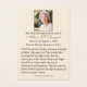 Esta elegante Carta de Oração do Memorial Funeral Católico apresenta uma imagem serena da Virgem Bênçada Maria, Nossa Senhora de Graça cercada por um arranjo floral, oferecendo uma bela homenagem a um ente querido falecido. O reverso é personalizável com uma foto pessoal e uma oração tocante para a alma dos falecidos, invocando a intercessão da Bênção Virgem Maria. Este cartão serve como um guardião duradouro para a família e os amigos, trazendo conforto e esperança através do compaixão de Deus. Ideal para funerais católicos e serviços de memória, estas cartas de oração são uma forma sincera de honrar a vida e a fé de seu amado.