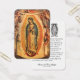 Esta é uma bela imagem de Nossa Senhora de Guadalupe num pergaminho cercado por flores e anjos celestes. Na parte de trás está uma bela oração, a Salve Reina em espanhol. Dios te salve, Reina y Madre de misericordia, vida, dulzura y esperanza nuestra, Dios te salve. A ti clamamos los desterrados hijos de Eva. A ti suspiramos gimiendo y llorando en este valle de lágrimas. Ea, pues, Señora, abogada nuestra: vuelve a nosotros tus ojos misericordiosos. Y después de este destierro, muéstranos a Jesús, fruto bendito de tu vientre. Oh clemente, oh piadosa, oh que cúmulo Virgen María. Ruega por nosotros, Papais noeis Madre de Dios, para que seamos dignos de las promesas de Cristo. Amém. (Crédito: catholictradition.org)