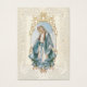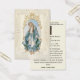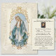 Apresentando uma bela imagem católica tradicional da Bênção Virgem Maria, Nossa Senhora de Graça enfeitada em um quadro de ouro ornamentado com flores azuis. O fundo é um design de renda vintage. Todos os textos e fontes estão em espanhol e podem ser modificados.