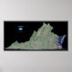 O estado de Virgínia do espaço é representado neste brilhante mapa/impressão de satélite. Os dados para esta foto de satélite foram melhorados topograficamente para trazer características do terreno. Além disso, este mapa de satélite tem linhas de condados (sem nomes), nomes de algumas grandes áreas metropolitanas e a bandeira do Estado.