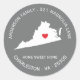Estado exclusivo da VIRGINIA Novo adesivo do rótulo do endereço residencial definido em um fundo de cinza com um coração e avião vermelhos.