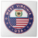 Crachá da Virgínia Ocidental com bandeira da Virgínia Ocidental e bandeira dos EUA cores, forma arredondada. Emblema da Virgínia Ocidental,