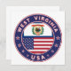 Crachá do Estado da Virgínia Ocidental com bandeira da Virgínia Ocidental e bandeira dos EUA cores, forma arredondada. Emblema da Virgínia Ocidental. Selo da Virgínia Ocidental. Coleção dos Estados Unidos.