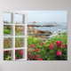 VISUALIZAÇÃO DA JANELA canvas GARDEN OCEANSCAPE OGUNQUIT.Aproveite esta vista todos os dias! Esta linda cena é enquadrada por uma janela aberta e cria a impressão de olhar através de uma janela real para que você possa acordar pela manhã e olhar pela janela e imaginar que você veja o adorável jardim e vista oceânica.