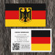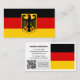 Cartões de visitas: cartão de visita alemão moderno com bandeira alemã de um lado e seus detalhes junto com o código QR digitalizável, pequena bandeira alemã do outro lado. Personalize facilmente o link no Código QR do seu site ou número de telefone celular, personalize o nome, os detalhes do endereço ou altere o sinalizador no lado do logotipo da sua empresa, foto pessoal ou qualquer outra imagem. Faça da sua conta ou apenas faça o cartão para mudar de casa.