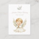 Um cartão de guarda simples e encantador para um batismo infantil, com uma doce ilustração de um pequeno vestido de branco com asas de anjo. A ilustração é totalmente personalizável e pode ser facilmente substituída por uma foto de sua escolha. Estas cartas fazem lindos favores batismos e lembranças sinceras para os seus convidados.