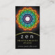 Ornamento do círculo, cartão de visita da arte da mandala. A mandala é um símbolo espiritual e ritual na hinduísmo e no budismo, representando o universo. Cartão de visita à moda e bonito com uma mandala colorido impressionante como o centro. Suas cores e formas trarão a um sorriso a todos a cara. Você pode fácil personalizá-los. O clique personaliza o botão para mais opções. Aprecie!