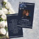 Um fundo azul escuro, uma falso armação prateada e espaço para sua foto. Decorado com flores azuis. Personalize e adicione nome, datas e texto.