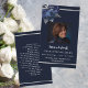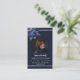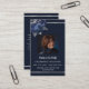 Um fundo azul escuro, uma falso armação prateada e espaço para sua foto. Decorado com flores azuis. Personalize e adicione nome, datas e texto.