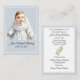 Um cartão de guarnição simples e elegante para o batismo de um bebê, apresentando uma doce ilustração de um pequeno no seu vestido batismo num fundo azul macio. A ilustração é totalmente personalizável e pode ser facilmente substituída por uma foto de sua escolha. Estas cartas fazem lindos favores batismos e uma memória sincera para os vossos convidados.