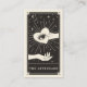 Este cartão de visita apresenta um design de estilo de placa de tarot em uma paleta de cores preta e creme. No verso está o espaço para detalhes sobre como cuidar das chibatadas após um tratamento. A ilustração mostra uma mão segurando um olho místico em um coração cercado por estrelas cintilantes. Isso seria perfeito para qualquer especialista em beleza, salão ou lash que prefere um cartão de visita no estilo do alternativo e quer tornar seu cartão de pós-tratamento de lixo memorável.