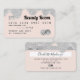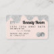 Um elegante cartão de visita do estilo de cartão de crédito de beleza na moda com uma tipografia de fontes moderna em um brilho falso prateado pinga de rosa pincelado e pastel. todo o texto é personalizável, adicione suas mídias sociais. Apresentando falso rosa dourado. Adicione seu logotipo, seu monograma e código QR.