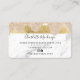Um elegante cartão de visita do estilo de cartão de crédito de beleza na moda com uma tipografia de fontes moderna em um brilho amarelo escura gotas em um mármore branco elegante. todo o texto é personalizável, adicione suas mídias sociais. Apresentando falso rosa dourado. Adicione seu logotipo, seu monograma e código QR.