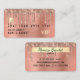 Cartão de visita de estilo de cartão de crédito de gotejamento brilhante elegante. Este cartão de visita pode ser personalizado para qualquer profissão. fundo de metal escovado rosa dourado. Elementos holográficos falsos.