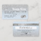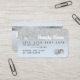 Um elegante e moderno, na moda, Cabelo de beleza e cartão de visita do estilo de cartão de crédito artístico de maquiagem, com uma tipografia moderna de fontes de caracteres em uma cinza cinzenta, cintilante ombre prateada e pastel suave poeirento fundo azul de tendência. todo texto é personalizável, adicione suas mídias sociais. Apresentando uma falso faixa prateada. Adicione seu logotipo, seu monograma e código QR.