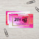 Este elegante design de cartão de desconto/cupom apresenta um tratamento de texto de script de pincel para você personalizar com sua própria oferta de promocional. Atualize o texto de suporte conforme necessário para sua empresa. Montado sobre um fundo vibrante de aquarelas cor-de-rosa brilhante para uma bela identidade de marca. A falsa borda de folhas metálicas de ouro adiciona um pouco de brilho a esta design. Esta placa de lado duplo oferece ampla sala no lado de trás para quaisquer detalhes e informações de contato. Criado para profissionais de beleza, salões, maquiadores, salões de unhas e muito mais. Arte com aquarela original e design © 1201AM Design Studio | www.1201am.com