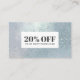 Sofisticado, elegante e elegante com uma reviravolta de luxo, este cartão de rede é excelente em fazer a primeira impressão perfeita! Um desconto moderno e giro na rede ou cartão de cupom com uma imagem digital de vidro azul iridescente com tons prateados e uma fonte em negrito este estilo de design de cartão de visita se conectará aos clientes elegantes que você está procurando. A Textura em pérola funciona incrivelmente bem para cartões de visitas em indústrias de luxo como beleza, spas e salões de cabelo, boutique de moda, design de interiores, spa do dia, ioga e bem-estar holístico. Excelente para artista de unhas, barbeiro, compras de presentes, designers de interiores, blogueiros, restaurantes e muito mais Para pedido personalizado, por favor envie-me para o endereço citronelladesign@gmail.com