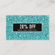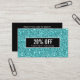 Desconto de rede moderno e giro ou cartão de cupom com imagem digital do padrão de brilho turquesa de luxo. Sobreposição de faixa preta. Excelente para profissionais de beleza, moda, entretenimento e eventos. Observe que a sequência é um efeito impresso, sem brilho no cartão. Ideal para salões de beleza, spas, cosmetologistas, estéticos, estúdios de dança, boutiques, designers, cabelos e estilistas de moda ou qualquer outro profissional sensível à imagem. Excelente para artista de unhas, barbeiro, compras de presentes e muito mais