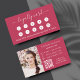 Um fundo magenta de tendência, texto branco na frente: Adicione seu desconto. Voltar: Personalize e adicione sua foto, nome, título, número de telefone, email, endereço do site, código qr ao seu site.