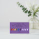 Este é um cartão roxo de promoção de fidelidade comercial com 10 fadas na frente que pode ser carimbado e usado para uma promoção de fidelidade. Personalize este cartão com seu nome comercial, endereço, cidade, estado, zip, número de telefone e email. A palavra lealdade pode ser removida, editada ou deixada como está. O verso do cartão tem uma fada de solteiro com a palavra "notas" que também pode ser editada ou deixada como está.