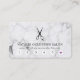 Cartões de fidelidade chiques para o seu salão de beleza ou negócio de estilo de cabelo apresentam um par de tesouras de estilista pretas em um fundo de mármore B&W com letras pretas. Adicione o nome da sua empresa e a oferta de fidelidade ao cliente abaixo com seis círculos para perfurar, e personalize o verso com seus detalhes de contato.