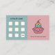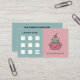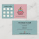 Um Cartão de Lealdade em cores rosa e azuis antigas, com um design de uma xícara de sorvete com uma cereja no topo, e oito capas vazias para um 9º grátis. Poderia ser usado para doces artesanais, salões de sorvete ou serviços de iguarias caseiras! Pelo contrário, existem informações de contato abrangentes, incluindo horas de abertura.