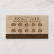 Este é um cartão de fidelidade para um compro de café. O design apresenta uma encantadora textura de papel antigo com grãos de café e oferece descontos a clientes leais.