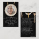 Cartão de oração totalmente personalizado com uma cruz decorativa no verso e versículos de oração que você pode personalizar. O cartão de oração vem com uma foto personalizável e personalizada e com um nome e data do funeral personalizados. O design apresenta um estilo de escrita e caligrafia à mão juntamente com fontes elegantes e sofisticadas.