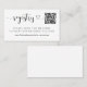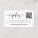 O design do cartão de registro de casamento preto e branco moderno e mínimo apresenta o título do script cardíaco "Registro", o seu código QR personalizado para um site de casamento e texto personalizado para instruir os convidados a acessar um registro de presentes online.