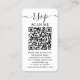 Compartilhe uma de suas fotos de noivado ou casamento e simplifique as respostas de RSVP com cartões de gabinete de código QR modernos de chic. Imagem e todo texto são simples de personalizar. (DICA DE IMAGEM: Uma maneira fácil de centralizar uma foto exatamente como você deseja é recortá-la antes de carregá-la no site do Zazzle.) Ao digitalizar o código QR com seu telefone, os convidados são enviados diretamente para o site do casamento para responder ao convite. Um processo de rsvp on-line reduz a chance de que as cartas sejam perdidas no correio. Também é mais versátil, na medida em que você pode pedir informações mais detalhadas, como escolhas de refeições, alergias à comida e pedidos de música. Todas as informações de resposta podem ser personalizadas ou excluídas. O design preto e branco apresenta a tipografia moderna minimalista, caligrafia manuscrita e uma fotografia da sua escolha. Este cartão é uma forma na moda de pedir aos convidados do casamento que respondam gentilmente à sua próxima comemoração especial.
