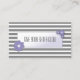 Este modelo de cartão de negócios frente e verso, inteiramente customizável tem um design lustroso, simples e elegante com as listras cinzentas e brancas e as flores roxas. Este é o cartão perfeito a incluir com suas amostras mini-faciais.