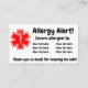 Visita Cartão de Jantar de Alerta de Alergia - em Inglês