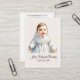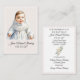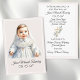 Um cartão de guarnição simples e elegante para o batismo de um bebê, apresentando uma doce ilustração de um pequeno no seu vestido batismo num fundo azul macio. A ilustração é totalmente personalizável e pode ser facilmente substituída por uma foto de sua escolha. Estas cartas fazem lindos favores batismos e uma memória sincera para os vossos convidados.