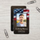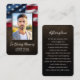 Honre a vida e o serviço de uma pessoa amada com este cartão memorial patriótico, com um pano de fundo de bandeira americano ousado e espaço para uma foto carinhosa. A design da frente inclui o nome e as datas de vida, oferecendo um tributo digno à sua memória. O lado inverso oferece espaço para um poema significativo, oração, ou mensagem pessoal, fazer-a como um guardião atencioso para a família e os amigos. Perfeito para serviços memoriais, funerais, ou como lembrança duradoura, este cartão combina elegância com orgulho nacional, prestando homenagem tanto ao indivíduo quanto ao seu legado.