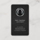 Este design cartão de visita de som forte e elegante apresenta uma sutil textura preta escura e escura ao fundo. A parte superior da placa tem um ícone cromo de tamanho médio de um fones de ouvido. Seu nome e título aparecem no meio, em letras brilhantes e fáceis de ler, enquanto seus detalhes de contato aparecem na parte inferior da placa em letras menores, mas limpas e legíveis. Perfeito para música, entretenimento, showbusiness, temas musicais, mas pode ser usado para quase todos os negócios ou indústrias.