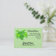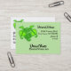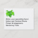 Modelo para negócios relacionados à Planta. Na frente, uma imagem tridimensional de uma folha de mariposa, com informações comerciais sobre fundo verde-claro. No verso, personalize o texto para mostrar suas especialidades de negócios, ele também tem as três folhas no canto superior esquerdo sobre fundo branco.