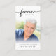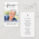 Funeral Forever Hearts Foto Cruzando Cartão de Oração do Jardim de Deus. Mantenha a memória de um ente querido perto com este cartão de oração personalizado com uma foto tesourada, o título FOREVER EM NOSSOS CORAÇÕES, o nome e as datas na frente e uma oração editável ou a mensagem de lembrança destacada com uma cruz (a amostra mostra o poema "Jardim de Deus"). Com a sua design preto e branco clássico simples, mas elegante, e a moderna tipografia de escrita manuscrita, ela faz uma manutenção significativa para partilhar num funeral, num serviço de memorial ou na Celebração da Vida e oferece conforto e um tributo duradouro à família e aos amigos. Seu pequeno e portátil tamanho de 3,5x2" (tamanho de carteira) torna conveniente que os entes queridos o carregar com eles como um lembrete da vida e do espírito de seu ente querido. A personalização torna cada placa única.