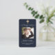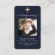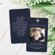 Fundo azul escuro, uma cruz dourada falsa e espaço para a sua foto. Personalize e adicione nome, datas e texto e oração.