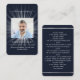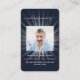 Um fundo azul escuro, Espaço para sua foto. Feixes de luz, atrás da foto. Personalize e adicione nome, datas e texto e oração.