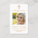 Um fundo branco, uma cruz dourada falsa e espaço para a sua foto. Personalize e adicione nome, datas e texto e oração.
